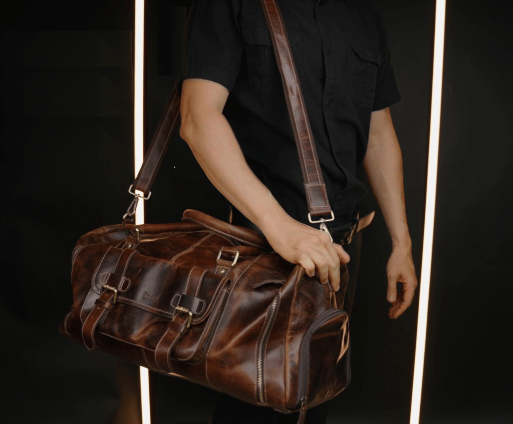 The durable construction of this leather weekender bag is meant to stand up to the rigors of travel while maintaining its luxurious rustic charm.